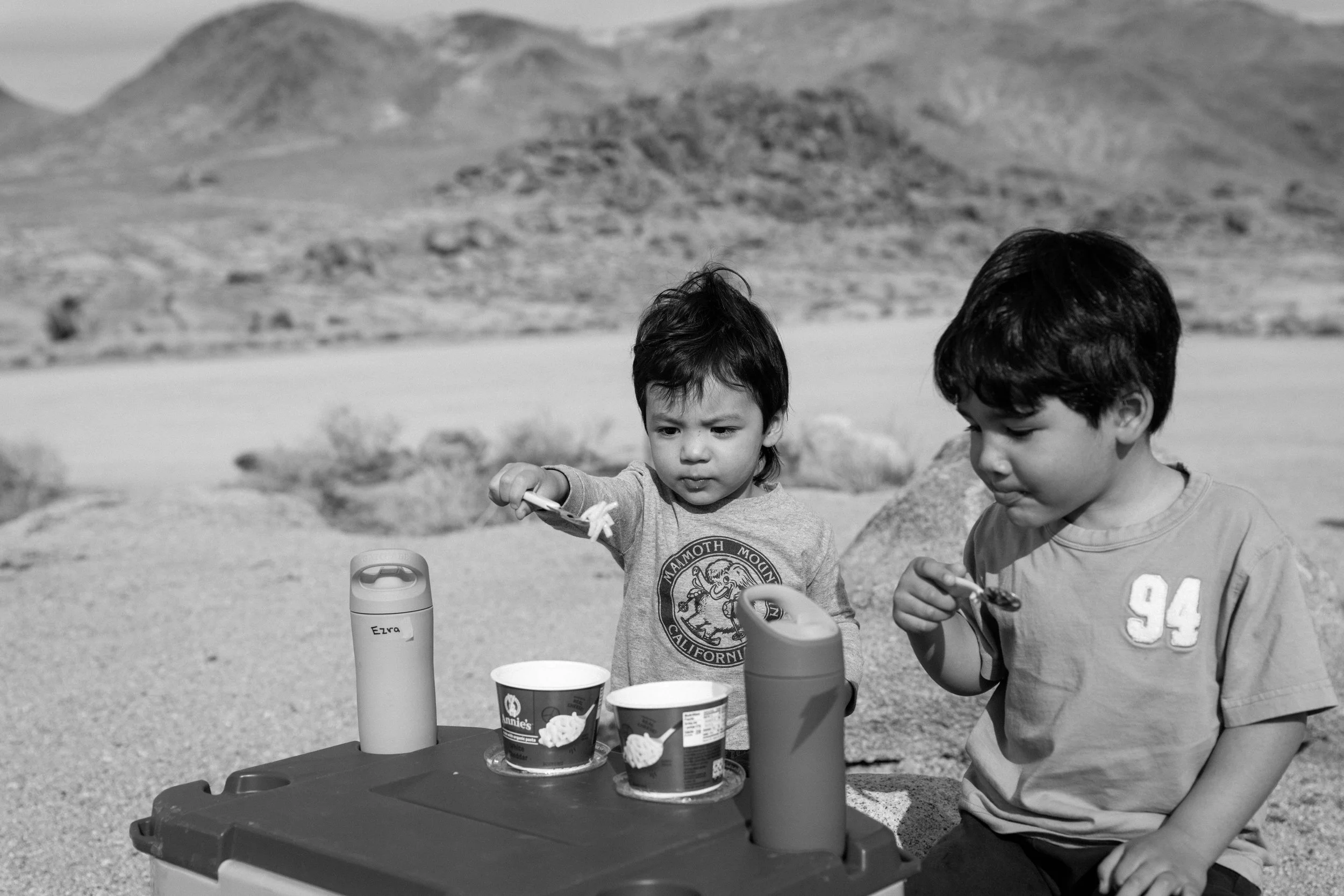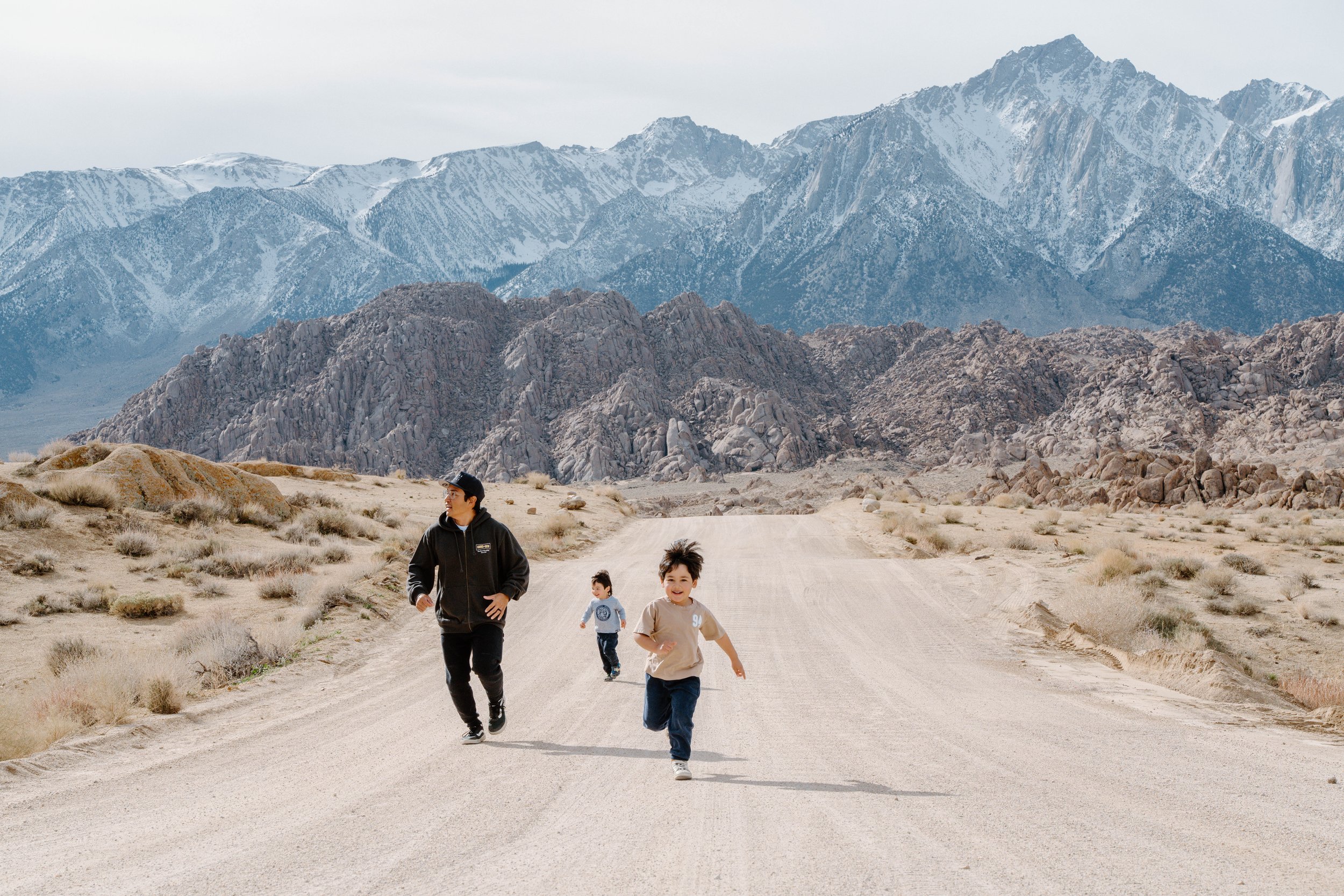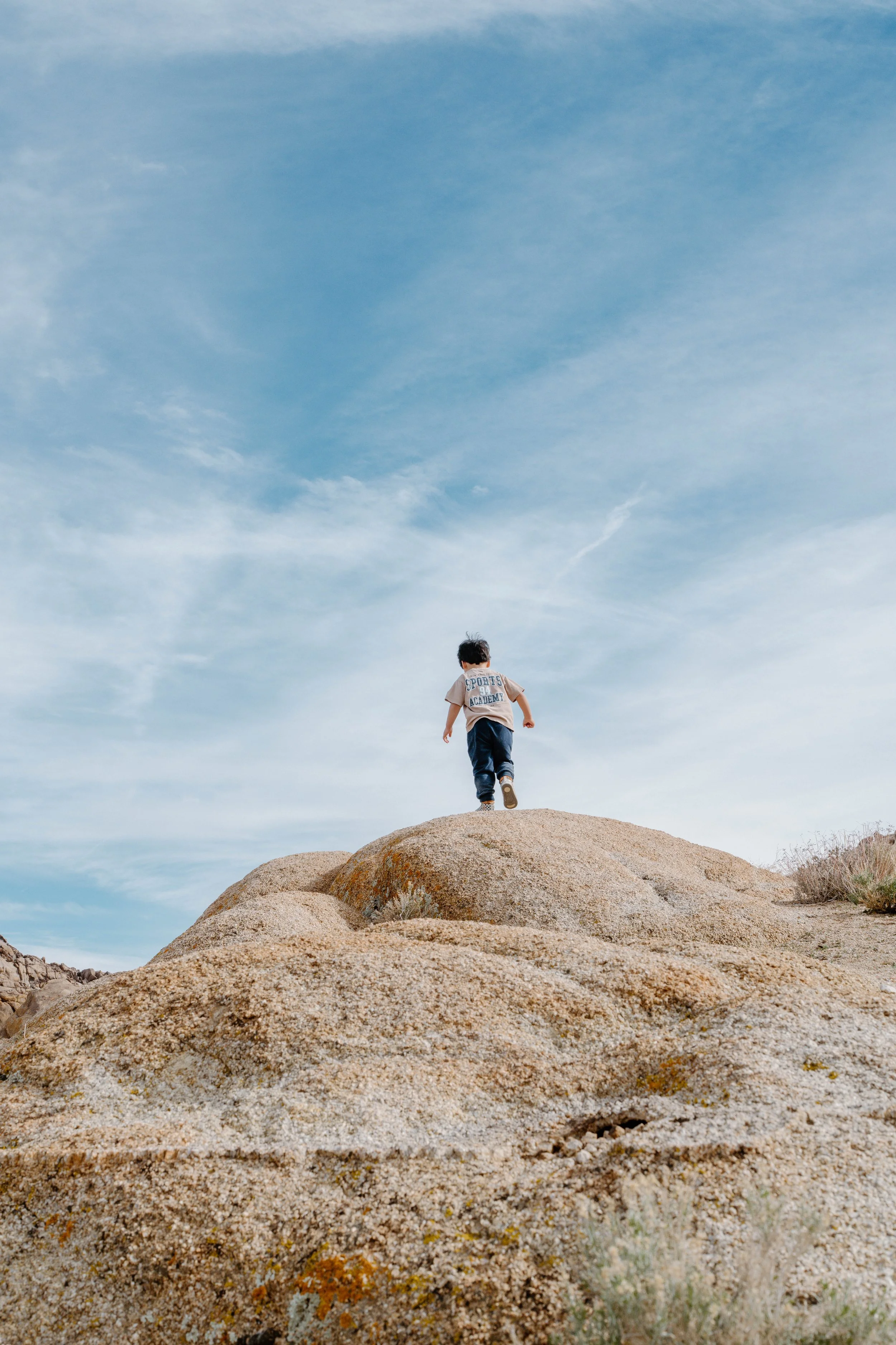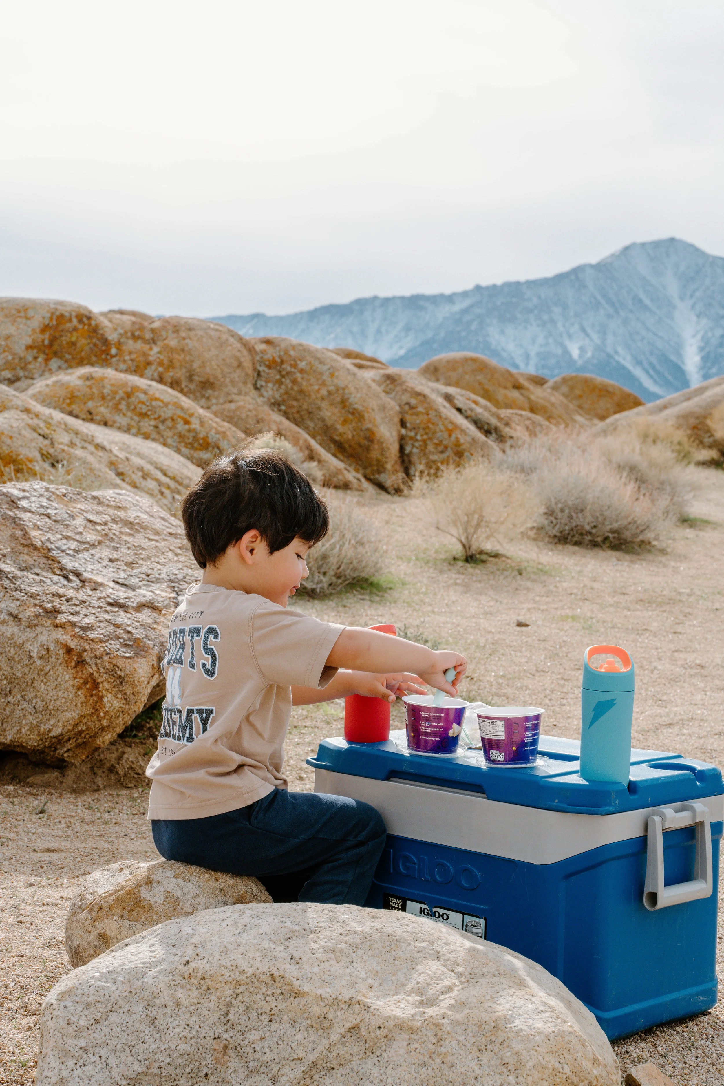 Our pit stop on the way home. This is one of those spots where the desert meats the tallest mountain in the United States standing at 14,500 feet, Whitney. Judah kept saying “mommy this is the desert” and it was hard for me to understand that because YES there are giant boulders and a few cactus here that remind us of Joshua Tree (another place he has been that probably reminded him of it). But looking into the distance and seeing the towering mountains covered in snow make you question everything. What is this place? It feels unworldly in the best ways. The boys ate their lunch, stopping to climb a rock or two between each bite. It was the perfect little boy playground in the middle of our 6 hour car ride home. We feel lucky that CA offers so many landscapes that give us joy and inspiration. It was a great reminder that detouring off our path, taking a long breaks to get the wiggles out, and filling up our tanks mentally and physically (the car included) is always worth it.