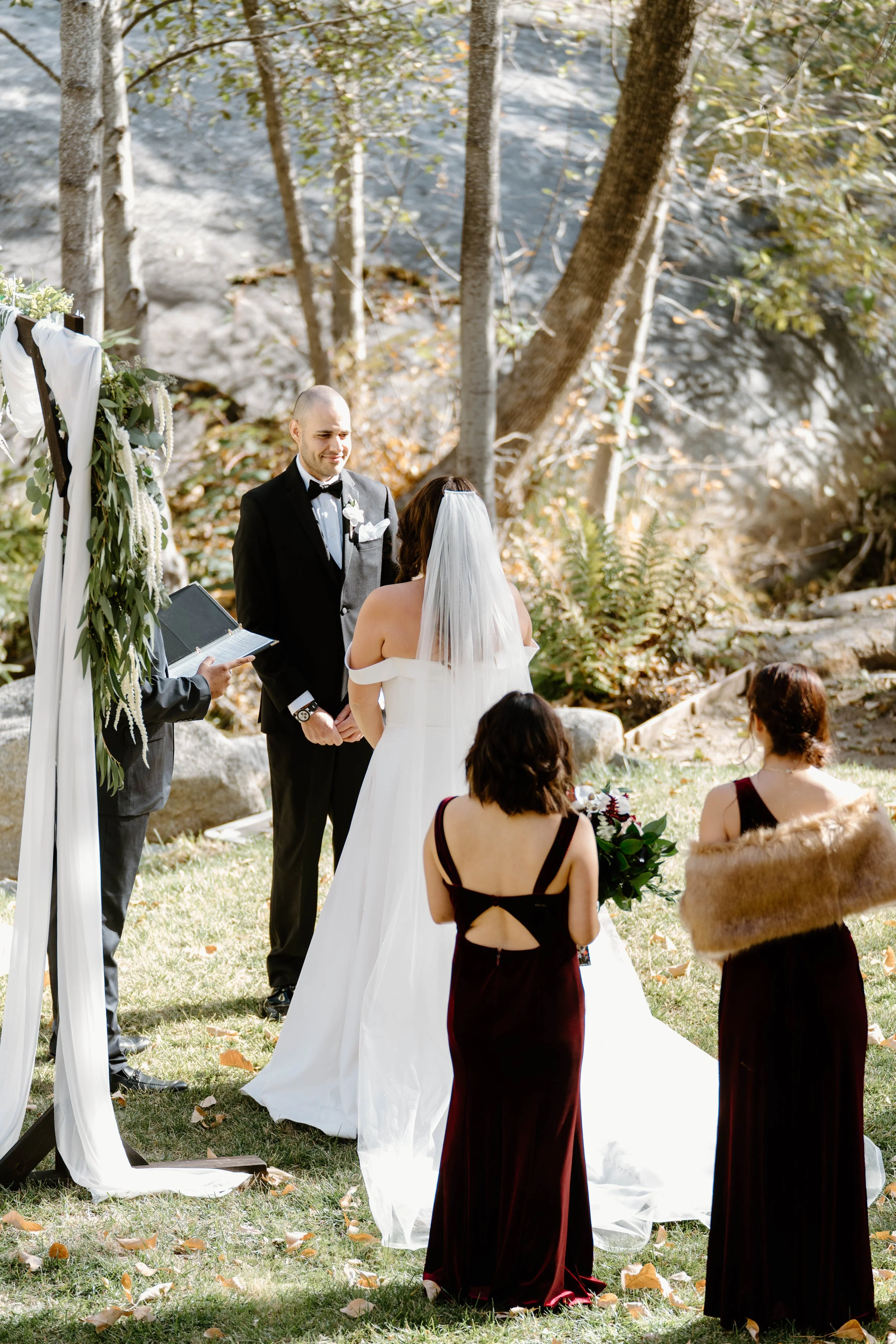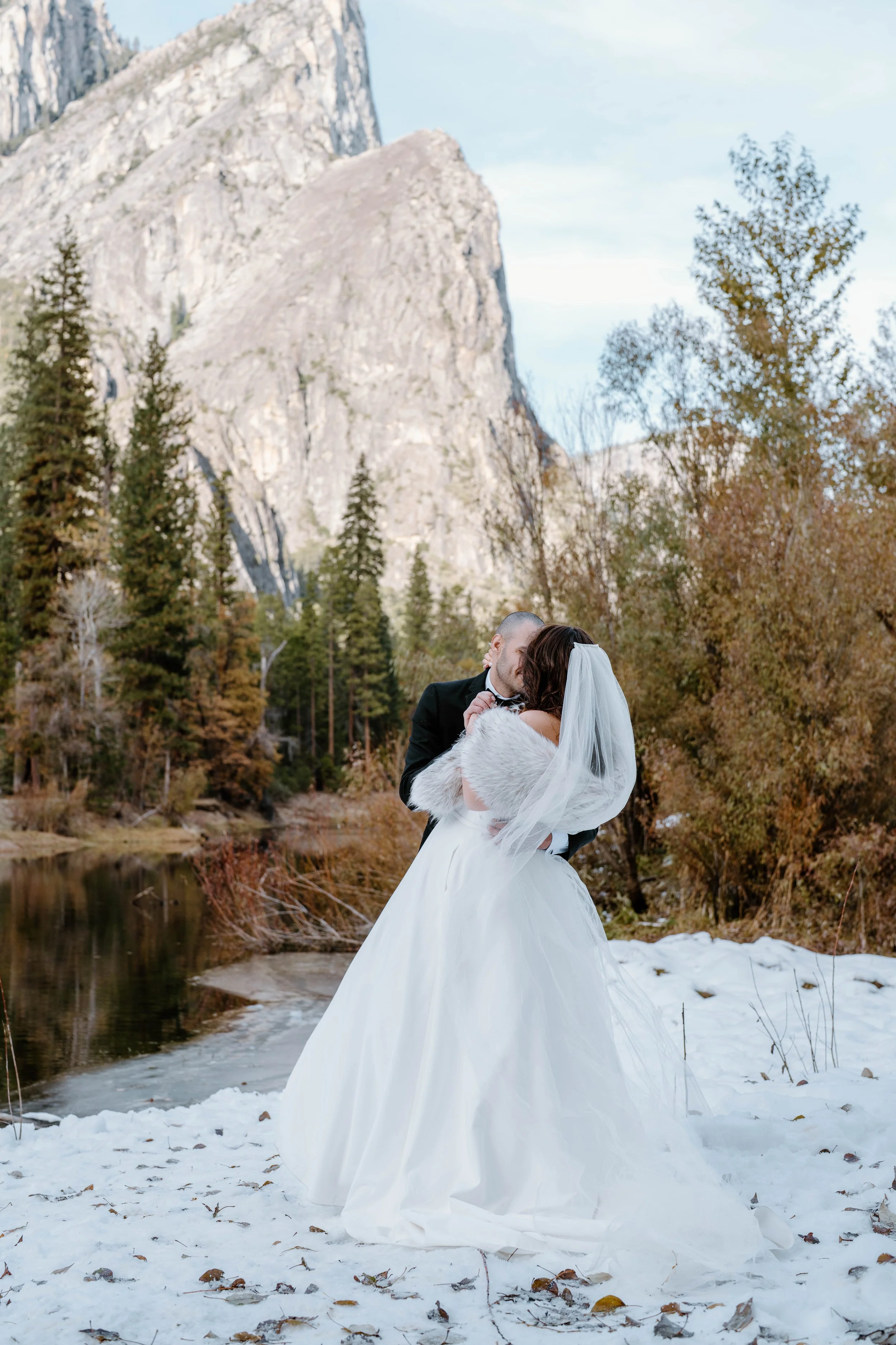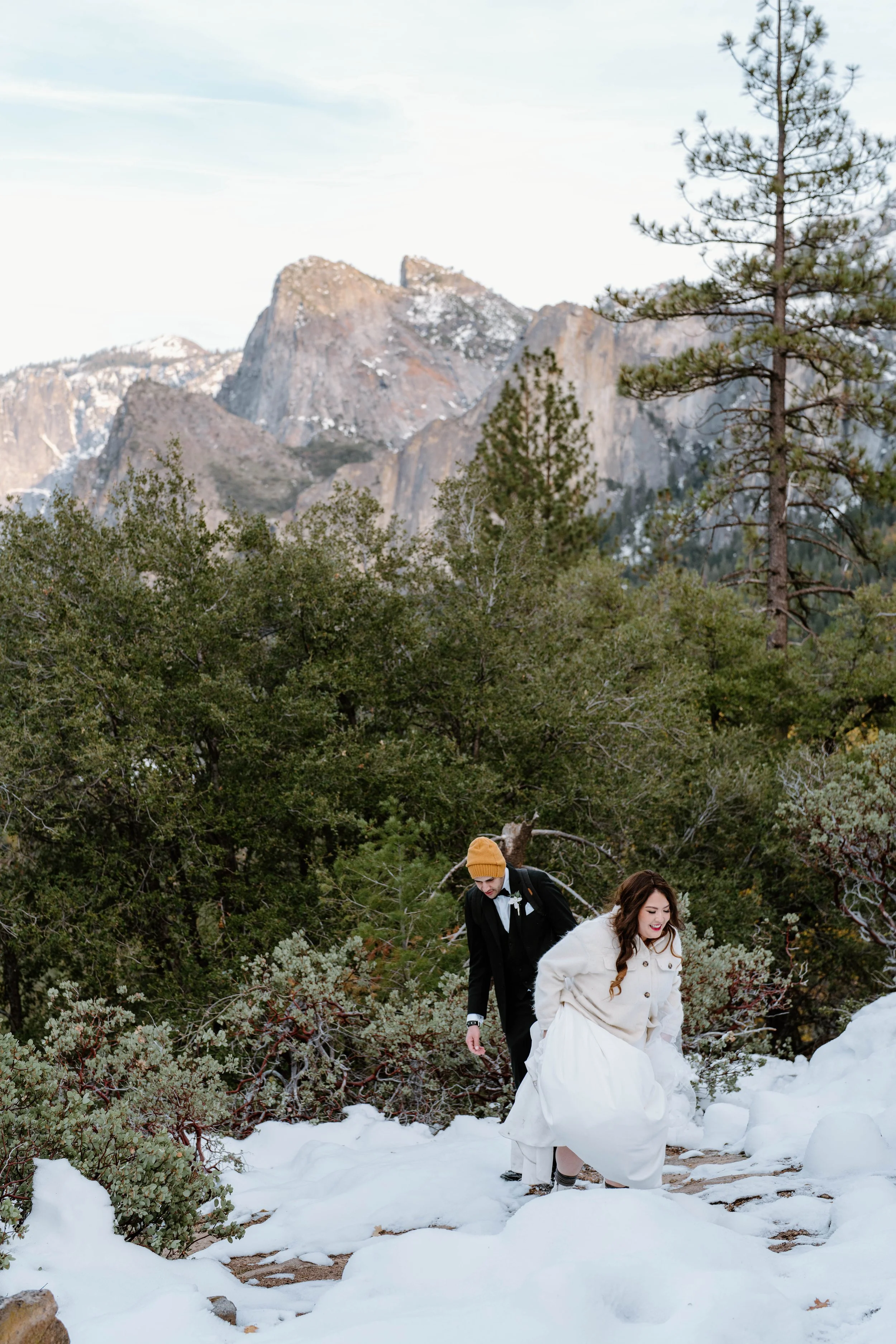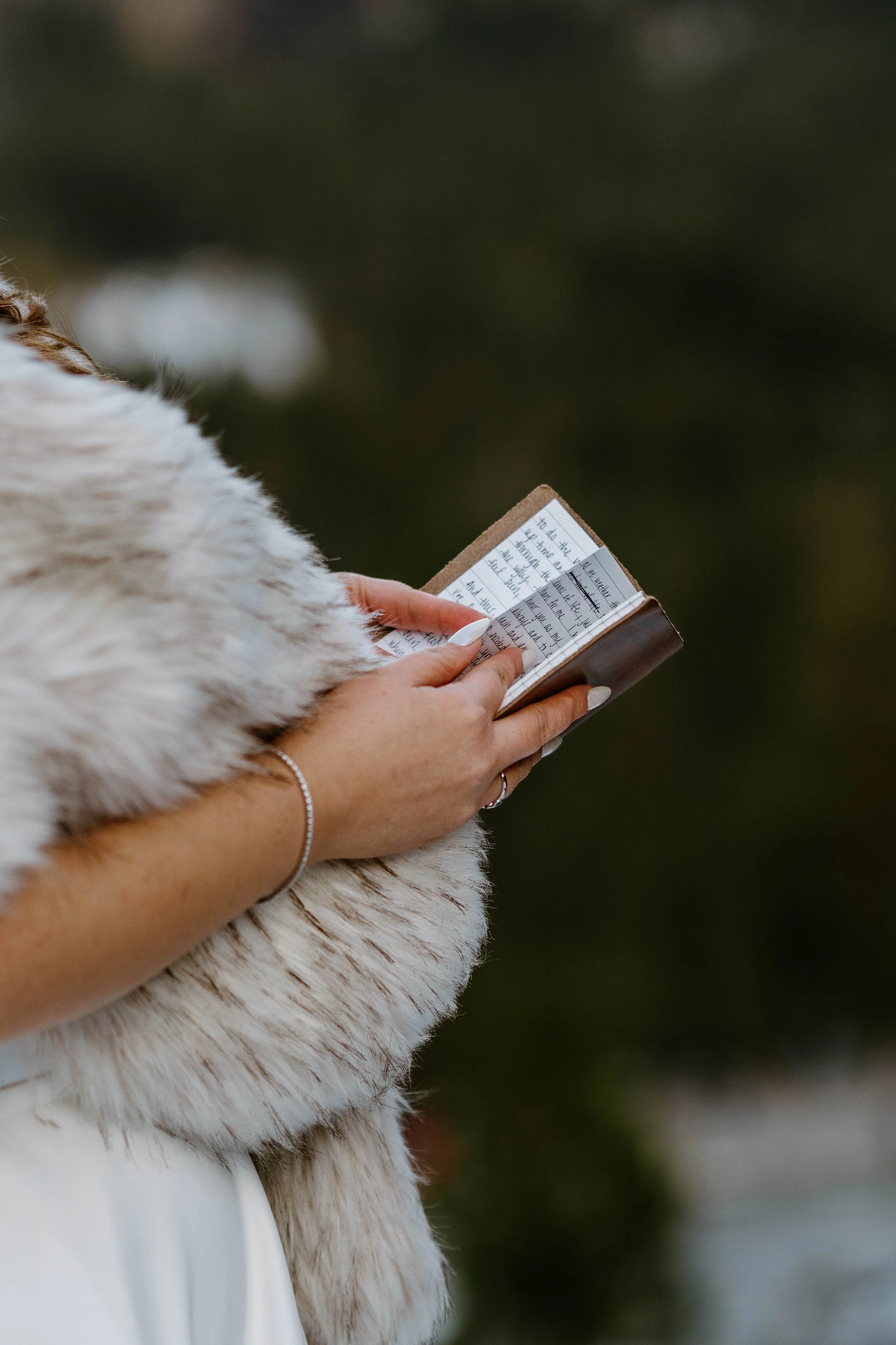 Snow settled softly along the cliffs. The air felt still, almost reverent. And tucked into it all were Amanda and Omar, standing across from each other, reading vows that felt like they belonged to the mountains just as much as they did to them.